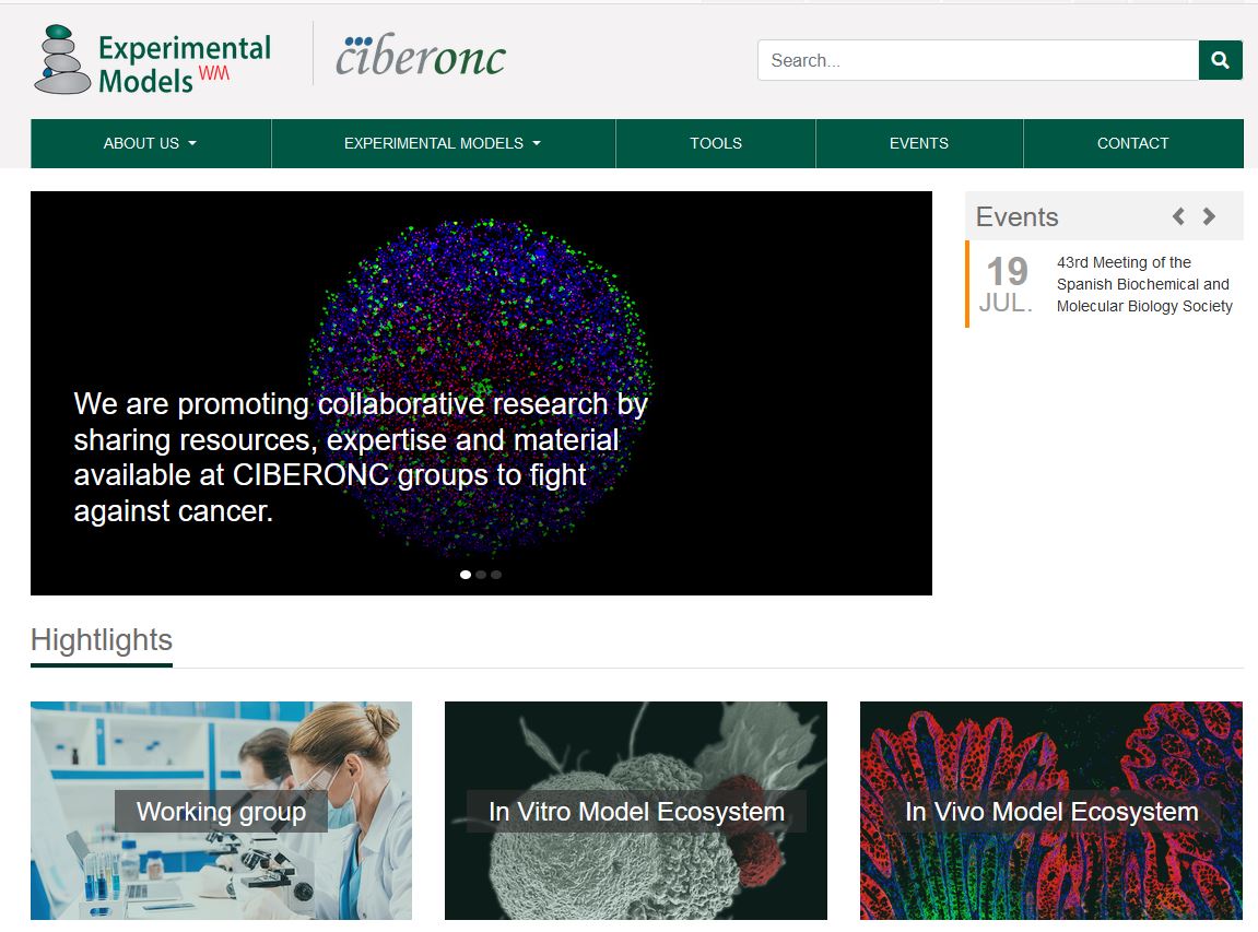 El CIBERONC ha publicado recientemente una nueva página web destinada a dar visibilidad al Módulo transversal de Modelos Experimentales. Este nuevo portal (https://modelos-experimentales.ciberonc.es/) es accesible desde la web principal de CIBERONC y constituye un catálogo en abierto de las tecnologías y modelos disponibles en CIBERONC en el área de la investigación preclínica. Su creación tiene como objetivo facilitar el acceso a la información y la colaboración entre los investigadores del CIBERONC.