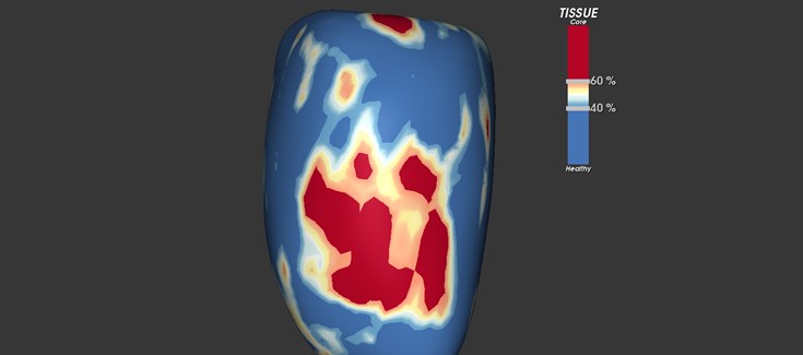 Resonancia magnética procesada de un paciente con miocardiopatía dilatada con criterios de riesgo de tener muerte súbita (créditos: cedida por el equipo del CIBERCV que coordina la investigación)