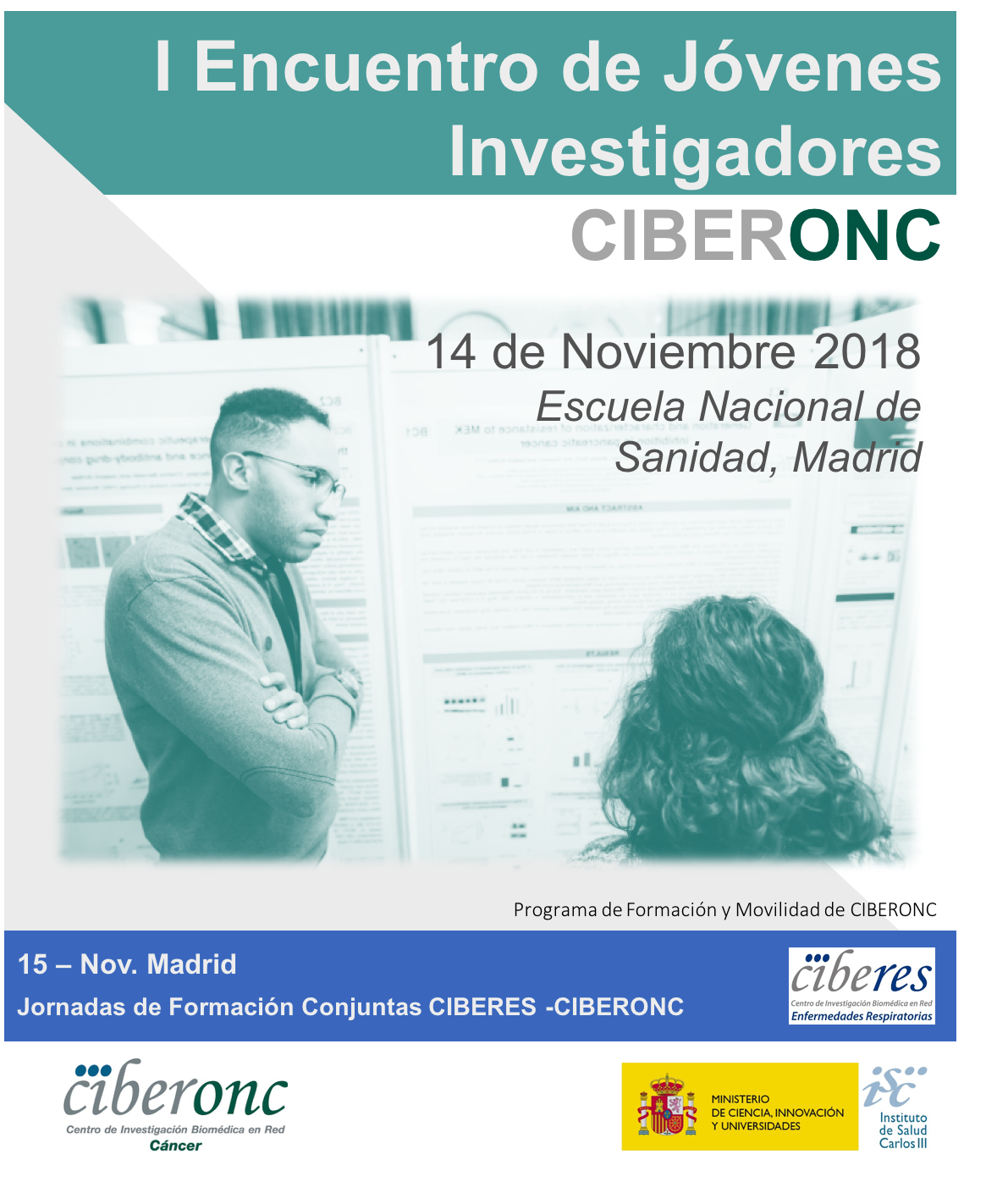 El próximo 14 de noviembre tendrá lugar el I Encuentro de Jóvenes Investigadores de CIBERONC en la Escuela Nacional de Sanidad, Madrid. El evento está financiado por el Programa de Formación y Movilidad dentro de su línea de Promoción de Jóvenes Investigadores, y busca generar un espacio óptimo para que los miembros más jóvenes del área puedan exponer y compartir sus avances de investigación.