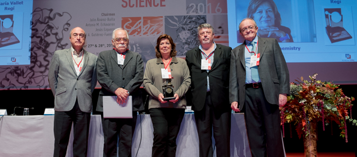 Con el Premio a una Carrera Distinguida, la Fundación Lilly reconoce carreras profesionales extraordinarias dentro del mundo de la investigación, así como sus méritos personales. En esta ocasión, a propuesta de la Real Sociedad Española de Química se ha decidido otorgar el galardón correspondiente a la especialidad de Química a la profesora María Vallet-Regí, jefa de grupo del CIBER-BBN y Catedrática de Química Inorgánica de la Universidad Complutense de Madrid.